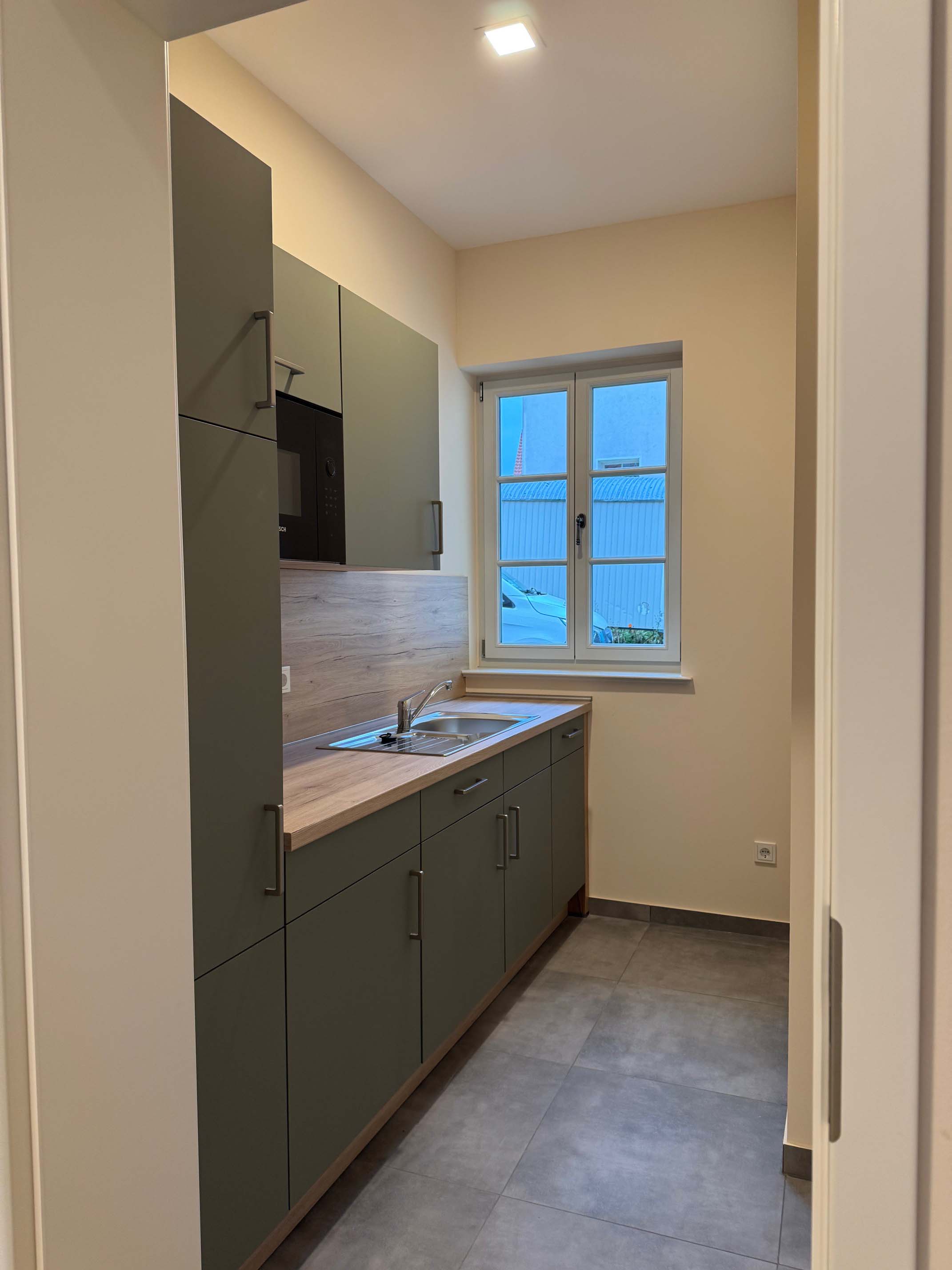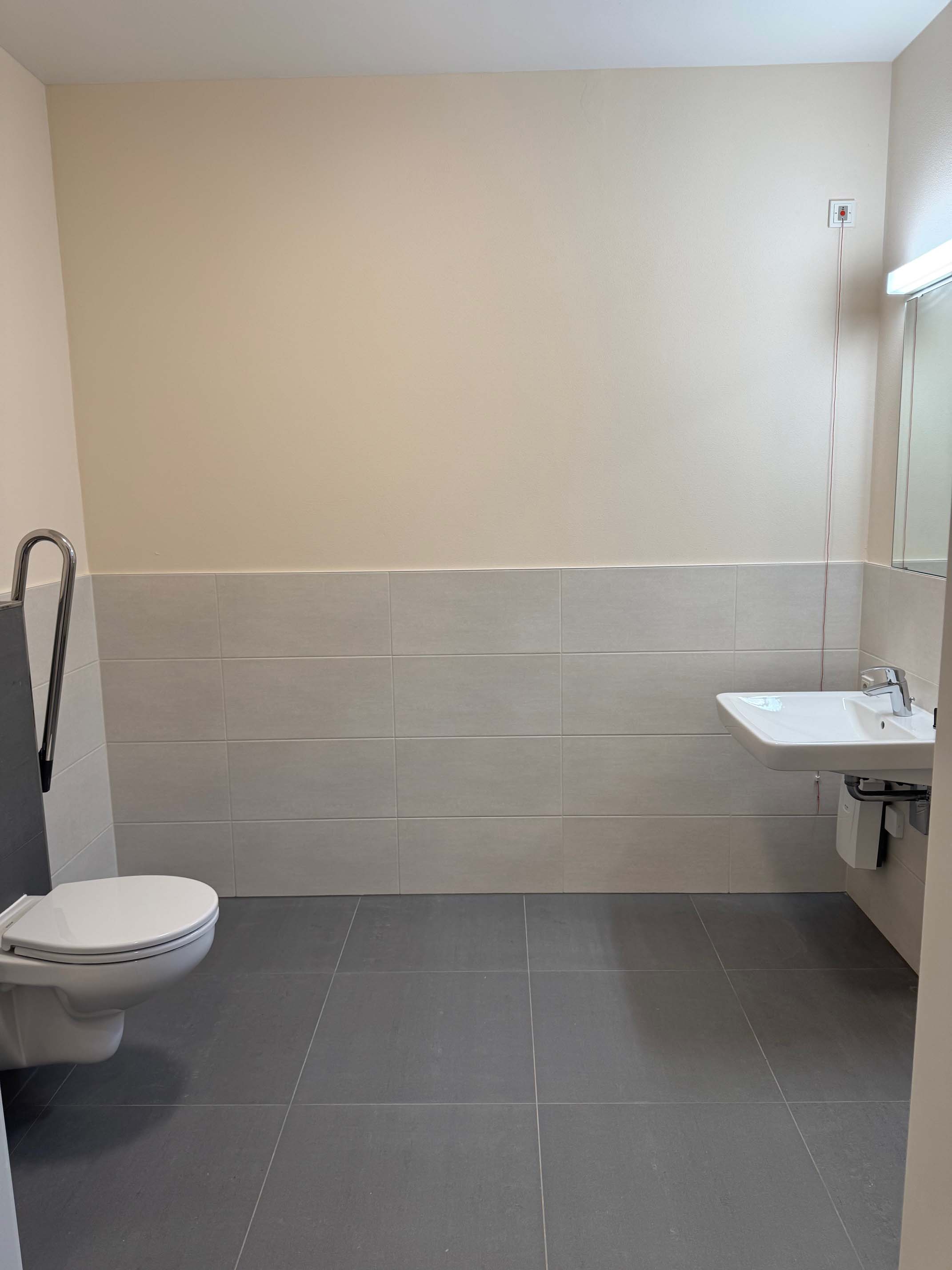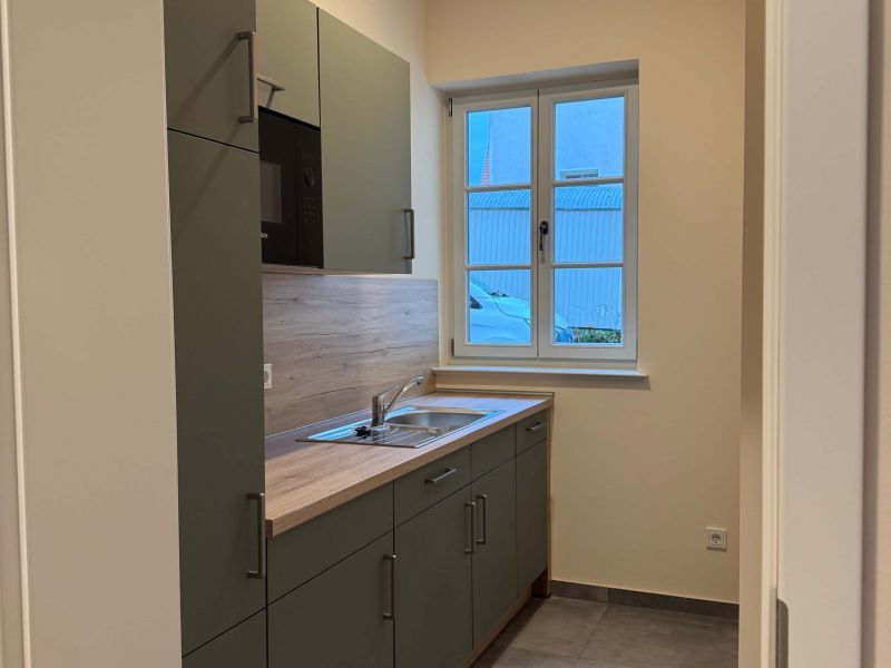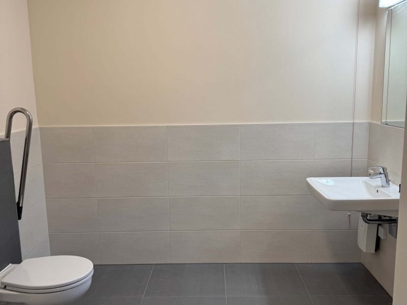 Für die häufig frequentierten Räume des Standesamtes und des Einwohnermeldeamtes sind die Räume im Erdgeschoss vorgesehen. Hier ist auch eine größere Wartezone für Besucher vorhanden. Eine barrierefrei gestaltete Toilette ebenso. Eine kleine Teeküche und ein Lagerraum, in dem sich auch die Inneneinheit der Wärmepumpe befindet, sind ebenso vorhanden.