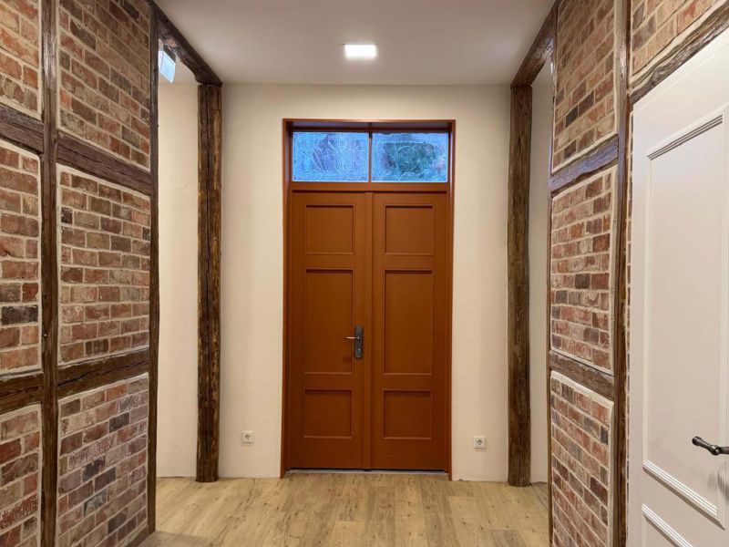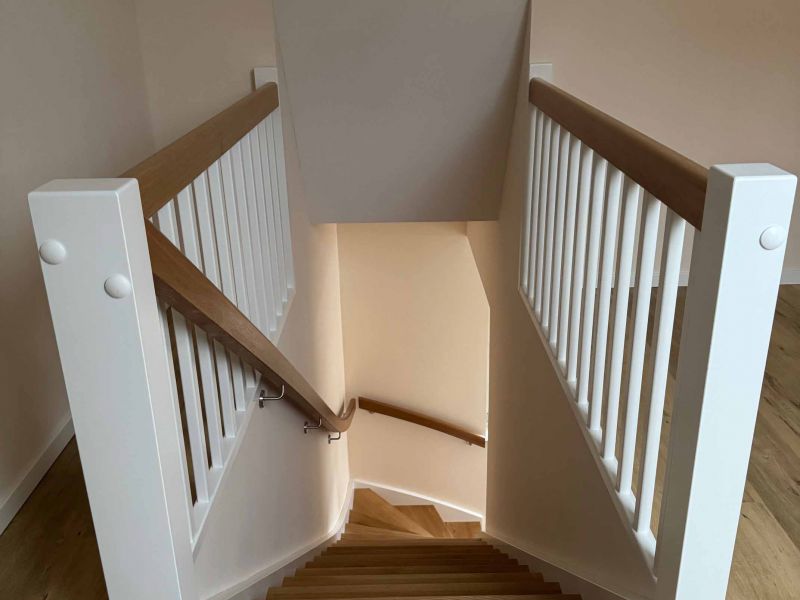 Der Zugang zum Gebäude wird auf der Südseite angebaut. Er ist über eine Rampe rollstuhlgerecht zu erreichen. Über einen Windfang kann der Flur im Erdgeschoss erreicht werden und durch eine Tür gelangt man über eine Treppe in das Dachgeschoss.