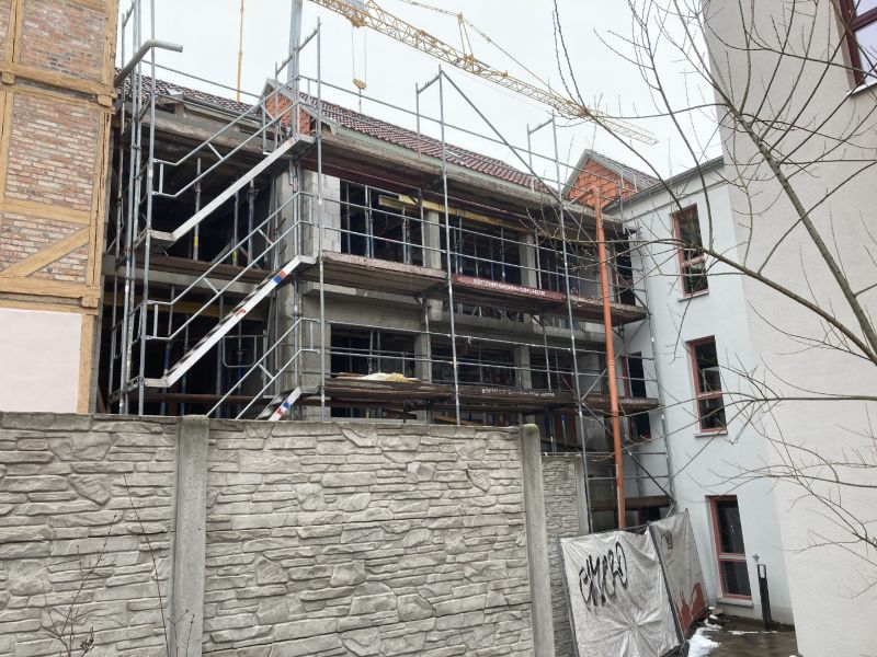 Das Fachwerkhaus soll über einen Neubauteil im Hof erweitert werden, der die Flucht des Steinwegs 58 aufnimmt. Der Neubauteil wird über 3 Geschosse errichtet (EG bis 2. OG) und erweitert die Nutzfläche pro Geschoss um ca. 12m².