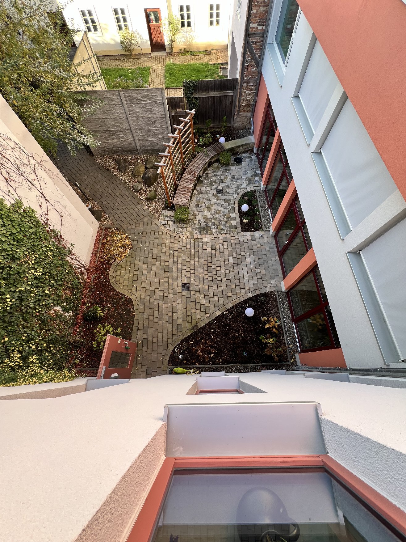 Im Erdgeschoss ist über einen Durchgang die Erweiterung der Tagespflege um ca. 60m² geplant. Die beiden Obergeschosse werden durch einen Verbindungsflur mit Erweiterung an der Hofseite des Seniorenpflegeheims angeschlossen. Pro Geschoss sind zwei Pflegezimmer geplant.